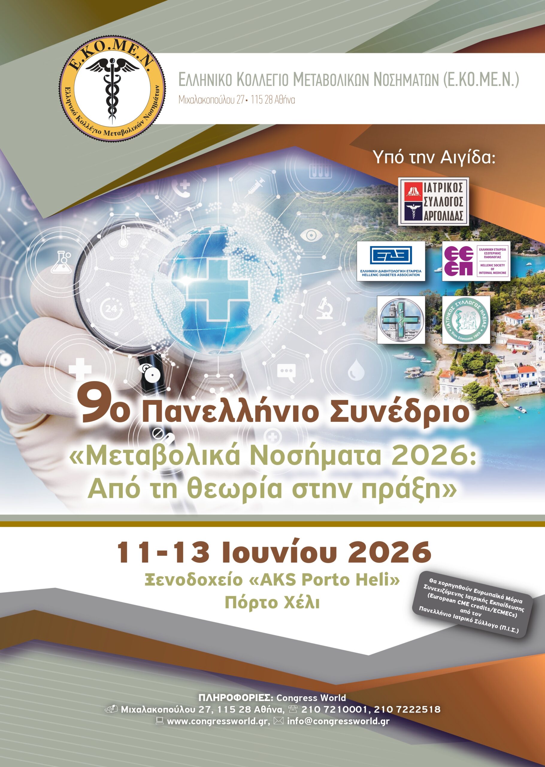 9ο Πανελλήνιο Συνέδριο “Μεταβολικά Νοσήματα 2026: Από τη θεωρία στην πράξη”, 11-13 Ιουνίου 2026, Ξενοδοχείο “AKS Porto Heli”, Πόρτο Χέλι Posted on 27 Απριλίου 202627 Απριλίου 2026 by Ιατρικός Σύλλογος Ηλείας Programma 9o Pan EKOMEN 16,8×24 6-2026 web10Λήψη